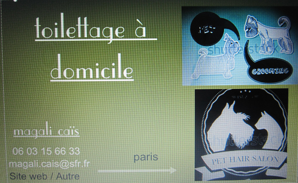 Magali Caïs, toiletteuse à Paris intra-muros vous propose ses prestations de toilettage à domicile, pour votre animal de compagnie tel que votre chien. Mme Caïs cumule une vingtaine d'années d’expérience sur les soins animaliers, en salon de toilettage et, depuis 2012, à son propre compte. Elle vous assure donc une grande dextérité et saura prendre soin de vos animaux de compagnie.